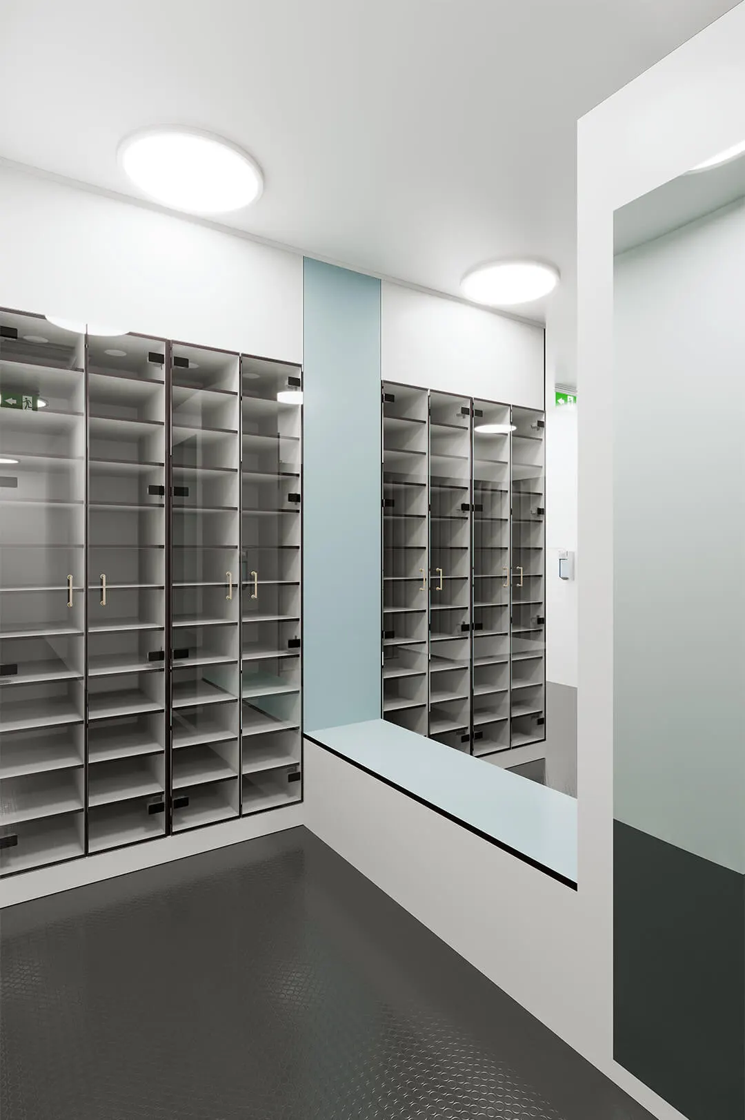 The service range of Schäfer Einrichtungssysteme impresses with its holistic furnishing concept for staff airlocks, staff changing rooms and cleanrooms. We custom-produce your cleanroom and airlock furniture to suit your needs, guaranteeing the perfect realisation of your individual building project. Our diverse range of equipment and accessories complements our range of staff airlocks, leaving nothing to be desired.